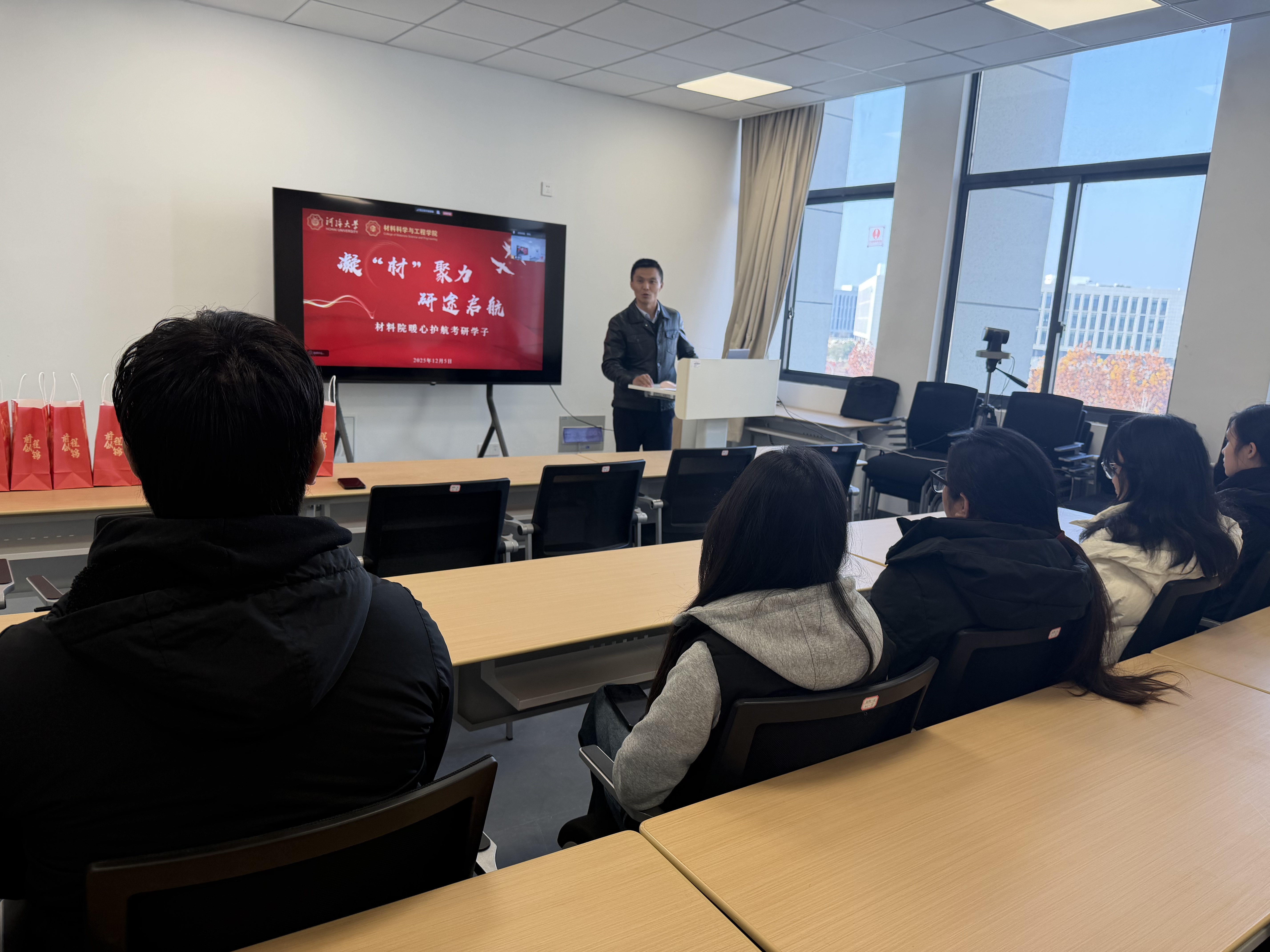 本次送温暖活动是学院落实立德树人根本任务、深化人文关怀的重要体现,是学院毕业班管理与服务工作中的重要举措,也是学院对本科生升学工作高度重视、对学生成长持续关怀的具体体现。通过精心准备的物资支持与面对面的暖心鼓励,学院切实帮助备考学子缓解压力、提振信心。笔锋所向,皆是坚持;时光不负,终见荣光。预祝全体材料考研学子执笔为剑,得偿所愿,一战成“硕”!